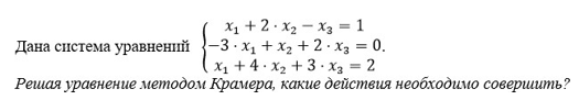 x1 +4·x2 + 3х2 = 2 Решая уравнение методом Крамера, какие действия необходимо совершить?