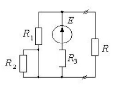 Дано: Е= 80 В, R1 = R3 = 4 Ом, R2 = 8 Ом. При каком значении сопротивления в резисторе R выделяется максимальная мощность? Определить значение Рmax
