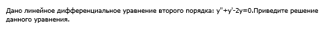 Дано линейное дифференциальное уравнение второго порядка: y''+y'-2y=0.Приведите решение данного уравнения.