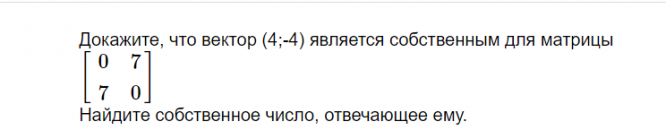 Докажите, что вектор (4;-4) является собственным для матрицы