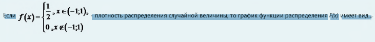 Если - плотность распределения случайной величины, то график функции распределения F(x) имеет вид.