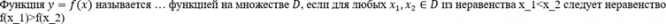 Функция у = f(x) называется.... функцией на множестве D, если для любых х1, х2 € из неравенства х_1<x_2 следует неравенство f(x_1)>f(x_2)