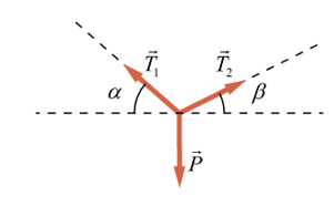 T1 * sin(α) + T2 * sin(β) = PПодставим известные значения: