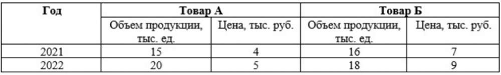 Первый индекс: (20 * 4 + 18 * 7) ÷ (15 * 4 + 16 * 7)