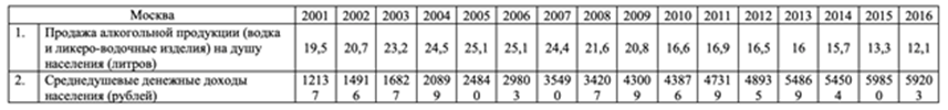 Таким образом, рассматривая предложенные варианты, степень влияния среднедушевых денежных доходов населения на продажу алкогольной продукции равна 0,6.