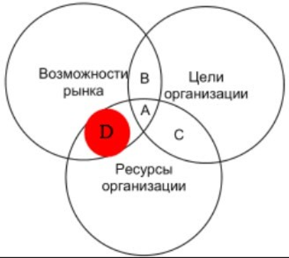 Как известно, оптимальным для реализации стратегии можно признать такое положение организации, при котором существует полное соответствие трех факторов: возможностей, которые рынок предоставляет фирме; целей, которые ставит перед собой организация; ресурсов, которыми она обладает. Компания