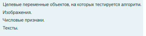 - Текстовые данные: Тексты могут использоваться в качестве признаков, например, в задачах классификации документов или отзывов. Для работы с текстами применяются методы обработки естественного языка (NLP), такие как векторизация слов (TF-IDF, Word2Vec и т.д.).
