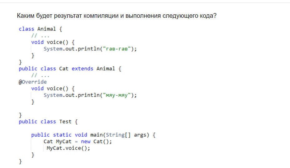 Другие предметы Университет Обработка исключений и управление потоком выполнения объектно-ориентированный анализ программирование университет код компиляция ошибка компиляции результат выполнения гав-гав мяу-мяу