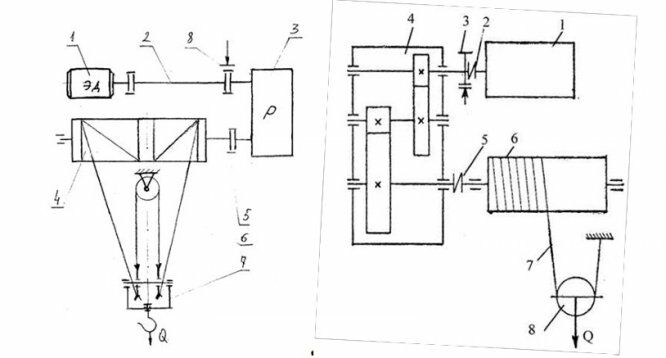 На какой схеме изображен механизм подъема с кратностью полиспаста равной 2?