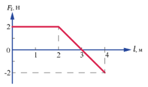 Допустим, максимальное значение силы F на пути 4 м равно 6 Н. Тогда: