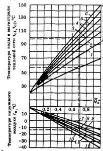 - Если на графике одновременно изменяются и температура, и расход теплоносителя, то это качественно-количественное регулирование.