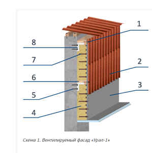 На схеме 1 представлен эскиз вентилируемой фасадной системы «Урал-1».