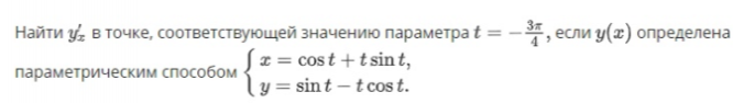 Найти в точке, соответствующей значению параметра t, если у(х) определена параметрическим способом