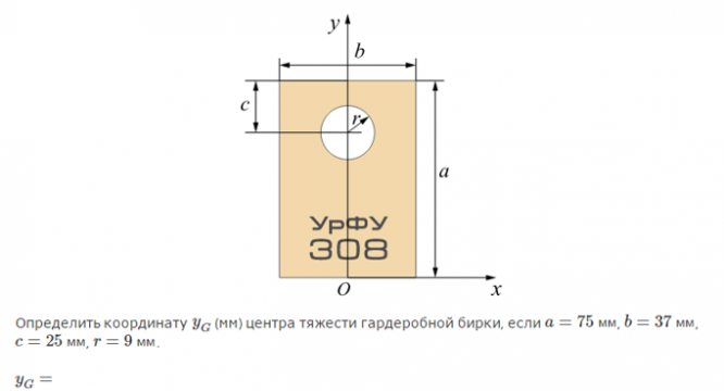 Определить координату Ус (мм) центра тяжести гардеробной бирки, если а = 75 мм, 6 = 37 мм, с = 25 мм, г = 9 мм.