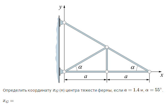 Определить координату XG (м) центра тяжести фермы, если а = 1.4 м, а = 55°