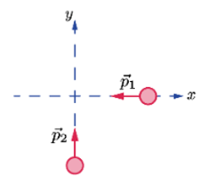 По гладкой горизонтальной плоскости по осям х и у движутся две шайбы с импульсами, равными по модулю P1 = 1,5 кг • м/с и р2 = 3,5 кг • м/с, как показано на рисунке.