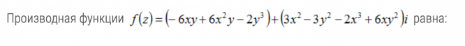 Производная функци производная функции f(z) = (-6xy+6x2y-2y3)+(3x2-3y2-2x3+6xy2)i равна: