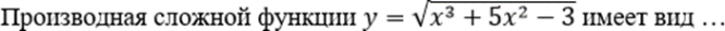 Производная сложной функции y=(x^3 +5*x^2 -3)^1/2 имеет вид ...