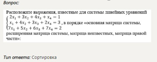 Расположите выражения, известные для системы линейных уравнений