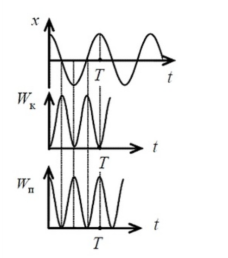 Таким образом, правильное утверждение: период изменения кинетической энергии совпадает с периодом изменения потенциальной энергии.