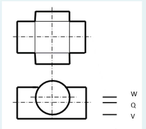 Таким образом, для определения точек границы видимости проекции линии пересечения на фронтальной плоскости мы используем фронтальную плоскость проекции и дополнительные вспомогательные линии для визуализации границ видимости.