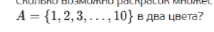 Чтобы ответить на вопрос о количестве возможных раскрасок множества чисел, необходимо уточнить, что мы имеем в виду под "раскраской". Обычно под раскраской подразумевается распределение цветов по элементам множества. Давайте рассмотрим несколько аспектов этой задачи.