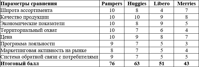 Другие предметы Университет Анализ конкурентоспособности брендов маркетинговый анализ рейтинг компаний подгузники для детей Huggies конкуренты конкурентоспособность брендов сравнительный анализ выводы маркетолога оценка брендов маркетинг подгузников стратегия конкуренции