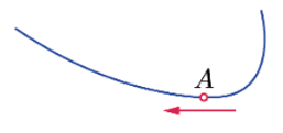 Точка А движется по криволинейной траектории в направлении, указанном стрелкой, с постоянным по величине нормальным ускорением. При этом движении величина скорости: