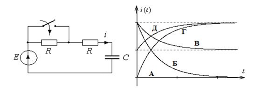 Таким образом, чтобы указать правильную кривую, необходимо выполнить анализ, описанный выше, и сопоставить полученное выражение для i(t) с предложенными вариантами.