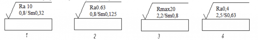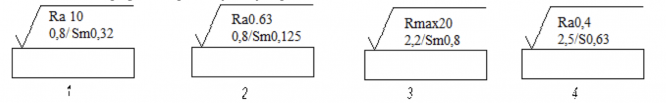 Укажите эскиз детали с нормируемой шероховатостью поверхности по среднему арифметическому отклонению профиля и среднему шагу неровностей