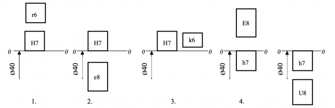 Укажите схему расположения полей допусков посадки с зазором в системе вала: