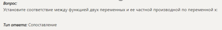 Установите соответствие между функцией двух переменных и ее частной производной по переменной х: