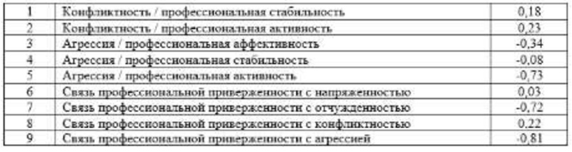 В таблице ниже даны итоговые данные после вычисления коэффициентов корреляции.