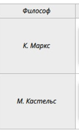 В таблице указаны имена философов: К. Маркс, К. Кастельс. Установите соответствие между подходом к типизации социально-исторического процесса, свойственными им принципами, положениями и именем философа. Перенесите в соответствующие ячейки таблицы: