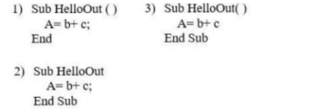 Вариант правильного описания процедуры на языке программирования VBA: …