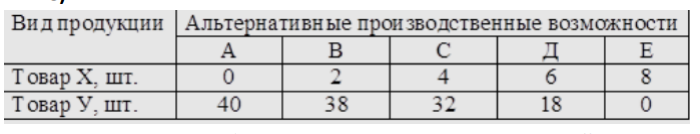 Предположим, что у нас есть таблица, в которой представлены различные варианты производства товаров X и Y. Мы должны определить, сколько единиц товара Y мы теряем при производстве дополнительной единицы товара X. Это и будет альтернативной издержкой.
